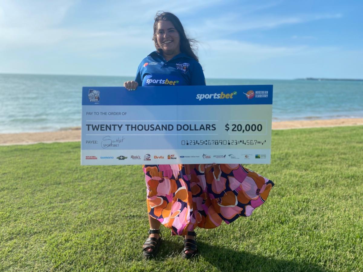 Lucky fisho Nicole Soltesz has pocketed herself $20,000 after hooking a Million Dollar Fish Season 8 red-tagged barramundi. Carrying a $10,000 red tag, the fish was worth double the money as part of a National Gone Fishing Day promotion, with competition underwriter SportsBet pledging to ‘Double the Dough’ for any fish caught on Sunday, 9 October.